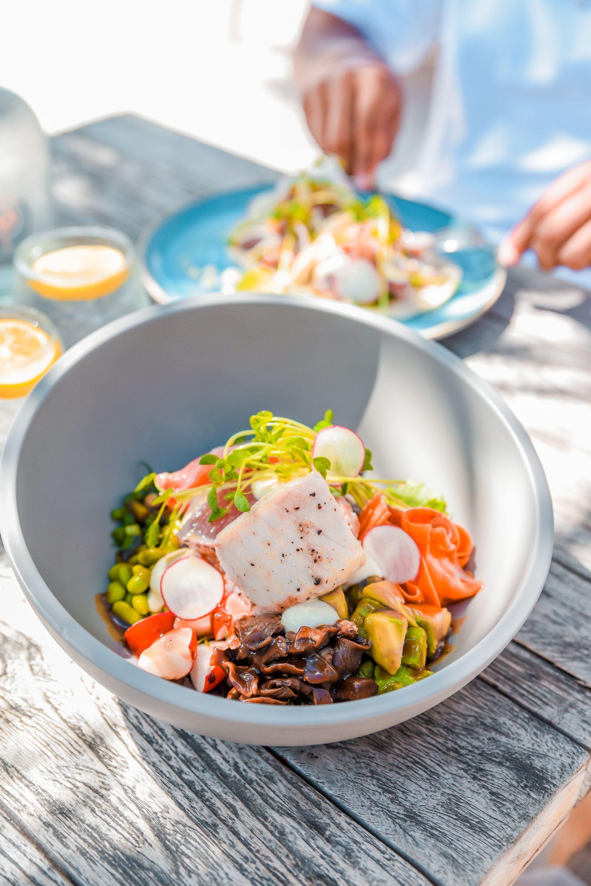 Indulge in beachfront dining at Barí, Chocogo Resort. Start your day with coffee or breakfast on lounge beds, and enjoy our diverse menu with salads, steaks, snacks, and cocktails.